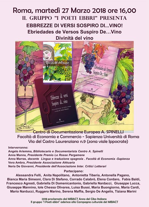 Presentazione del volume antologico "Ebbrezze di versi sospiro di...vino" dedicata all'uva italiana.